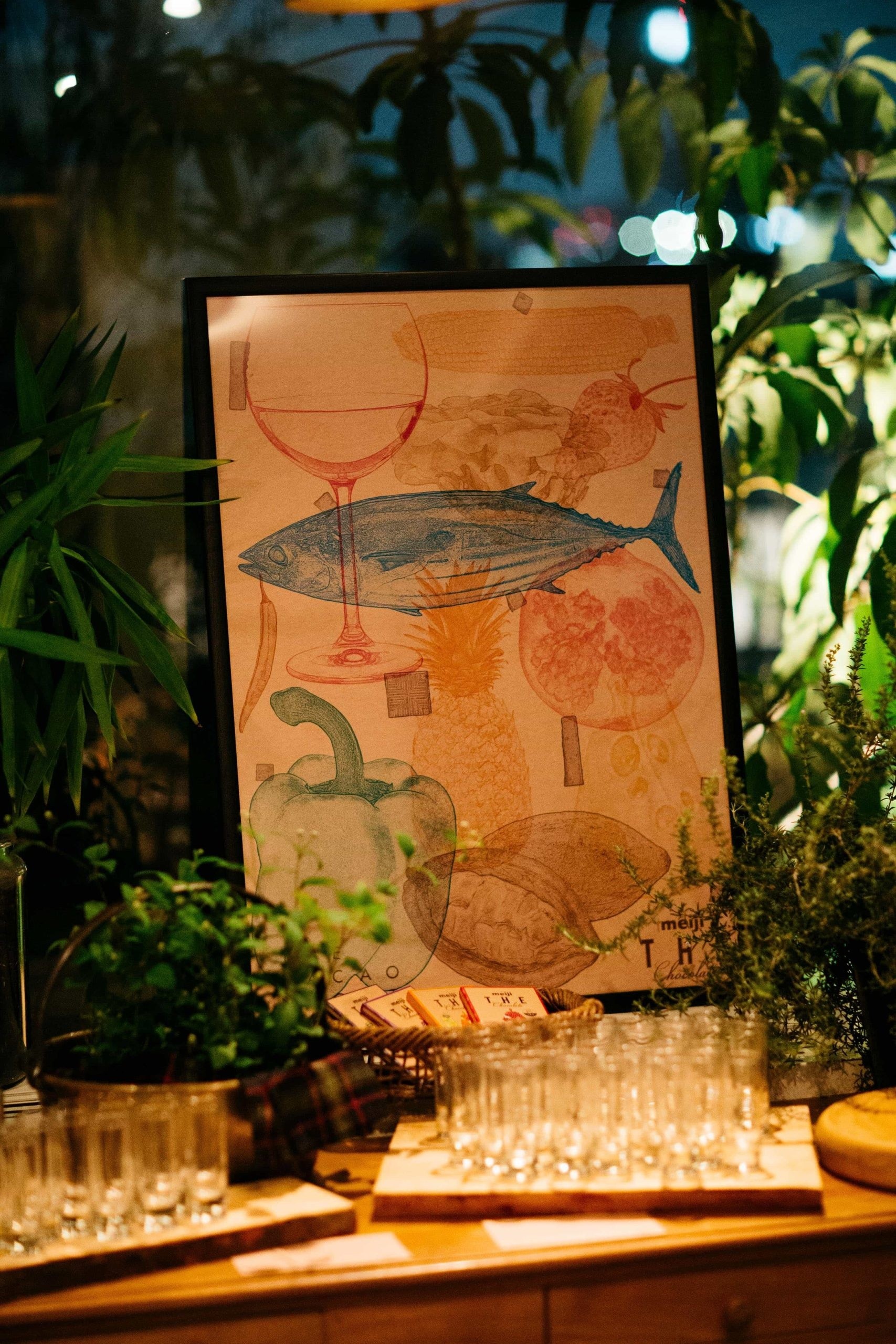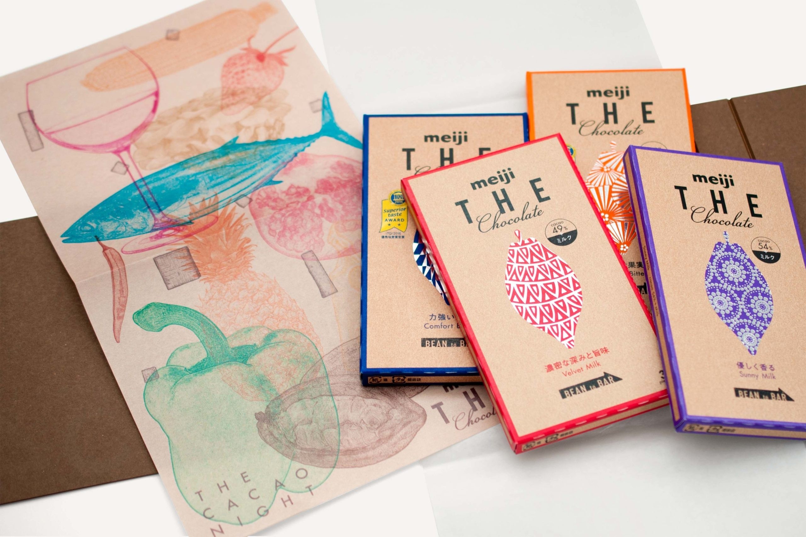 専門店の領域であったカカオ豆の厳選からチョコレート製造までを一貫体制のもと行う「Bean to Bar」に明治が大手国内製菓メーカーで初めて取り組み、高品質なチョコレートを手に入れやすい価格で多くの方に楽しんでもらうことをコンセプトに商品開発された「meiji THE Chocolate」 。その発売前に影響力を持つ注目のインフルエンサーのみを招待した、一夜限りのディナーイベントのディスプレイグラフィック、ポスター及び商品をギフトとして持ち帰ってもらう為のスペシャルパッケージのアートディレクション・デザインを行いました。